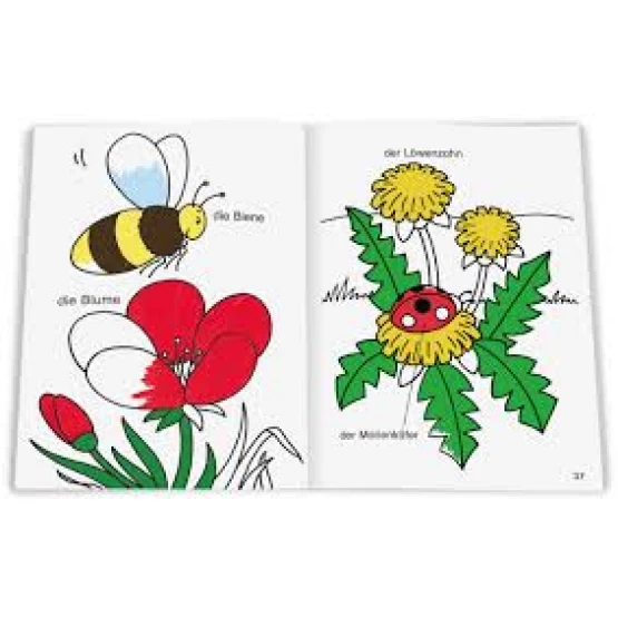 Deutsch lernen macht Spaß! Beim Ausmalen über 120 deutsche Begriffe kennenlernen.