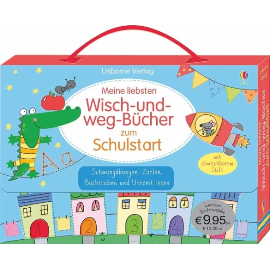 Bist du bereit für die Schule? Mit den vier Büchern in diesem Koffer übst du den sicheren Umgang mit dem Stift, lernst erste Buchstaben, Zahlen und Formen kennen und erfährst, wie man die Uhr liest. Dank des abwischbaren Stiftes kannst du immer wieder von Neuem anfangen!