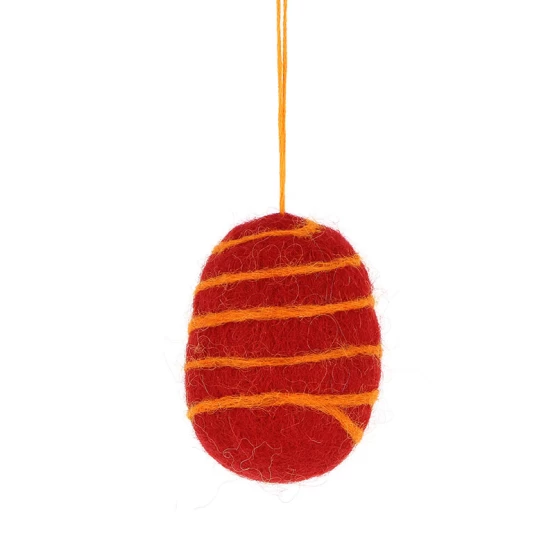 Πασχαλινό αυγό από τσόχα κόκκινο ριγέ, 6 cm - Osteranhänger Streifen rot, Filz