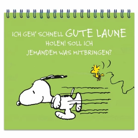 Spiralbuch zum Verschenken und Aufstellen mit lustigen Sprüchen und niedlichen Peanuts-Illustrationen für gute Laune.