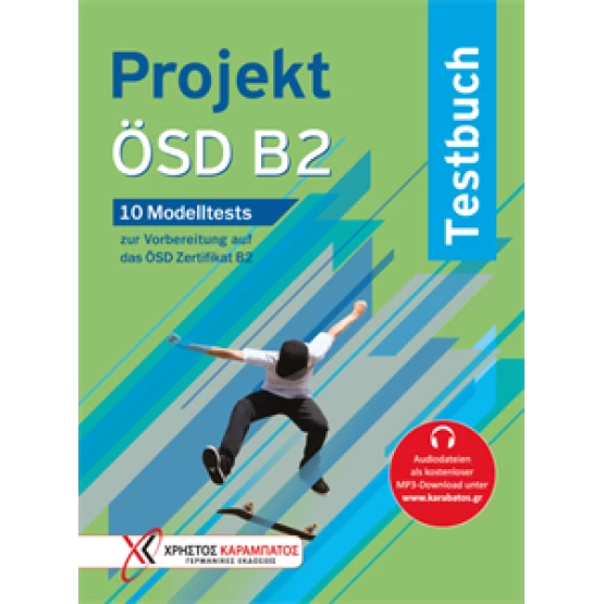 Το βιβλίο περιέχει 10 πλήρη πρότυπα τεστ πάνω σε όλα τα μέρη της εξέτασης: Κατανόηση γραπτών κειμένων, Κατανόηση ακουστικών κειμένων, Γραπτή έκφραση και Προφορική έκφραση. Επιπλέον, το Projekt ÖSD B2 περιλαμβάνει πληροφορίες για τη δομή της εξέτασης, το προκαθορισμένο χρονικό πλαίσιο και την αξιολόγηση του κάθε μέρους της εξέτασης