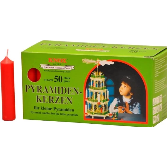Κόκκινα κεράκια, σετ των 10 τεμαχίων, κατάλληλα για τις ξύλινες χριστουγεννιάτικες πυραμίδες. Λόγω της διαμέτρου προσαρμόζονται και σε κηροπήγιο για το φωτισμό του χριστουγεννιάτικου δέντρου.
