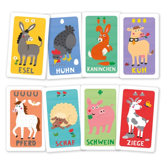 Μαθαίνω τα ζώα στο αγρόκτημα. Η συσκευασία περιλαμβάνει 32 κάρτες με εικονογραφημένες κάρτες πάνω στις οποίες είναι γραμμένη και η αντίστοιχη λέξη.