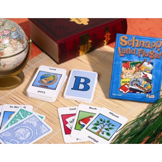 Schnapp, Land, Fluss! Ein bunter Buchstabenhaufen liegt in Form von Karten auf dem Spieltisch. Wie lautet noch mal die Kategorie, für die gerade ein Begriff gesucht wird? Kleidung? Gut, dann also los: ZACK! Sechs Hände sausen auf die Karten in der Tischmitte hinunter. Die schnellste landet auf dem R. Ringelsöckchen ertönt es von einem der Spieler und sofort schnappt er sich die Karte mit dem R. Für 2-6 Spieler ab 8 Jahren.