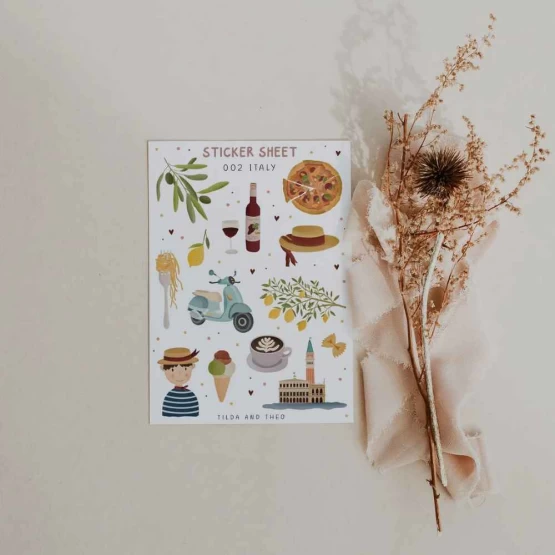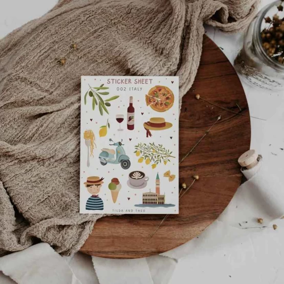 16 χαριτωμένα αυτοκόλλητα με θέμα την Ιταλία. Πολύ όμορφα και πρωτότυπα για να διακοσμήσετε δώρα ή σημειωματάρια και τετράδια.