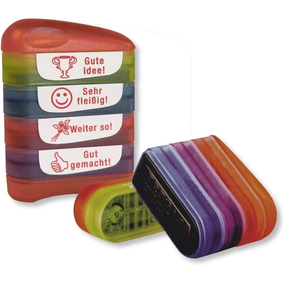 Σετ 4 σφραγίδες επιβράβευσης με διαφορετικά μηνύματα στα γερμανικά. Με ιδιαίτερη τεχνική εκτύπωσης για ακριβή και καθαρή αποτύπωση.
