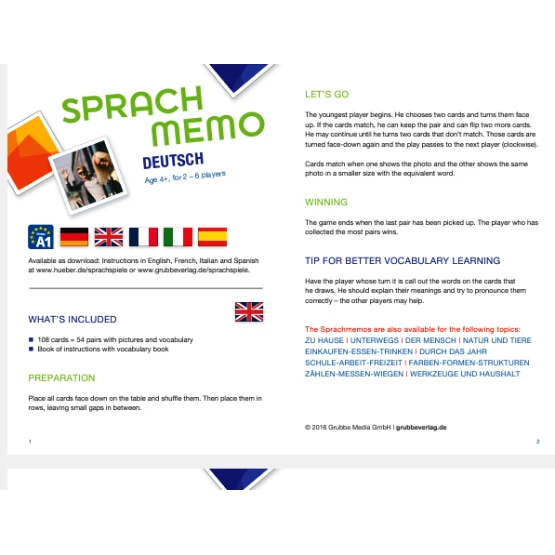 Basiswortschatz spielerisch Deutsch lernen. Niveau A1. Sprachspiel. Das Spielmaterial: 108 Karten (54 Paare), Spielanleitung mit Vokabelliste