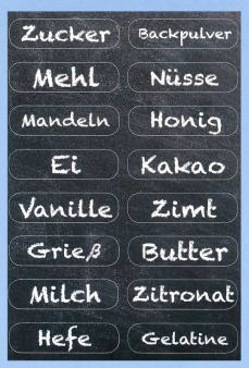 Sticker Etiketten Zutaten/ 3 Bogen 7,8x12,50 - αυτοκόλλητα με υλικά μαγειρικής