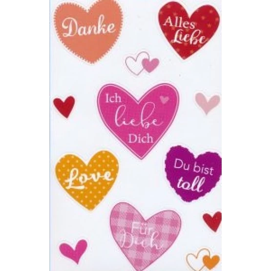 Sticker Herz- Danke/ 3 Bogen 7,8x12,50 - Αυτοκόλλητα καρδιές