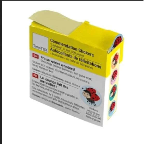 Αυτοκόλλητα επιβράβευσης σε διάφορους χρωματισμούς, που παρέχονται σε μια πρακτική και εύχρηστη συσκευασία ρολό (70x70x24 mm). Ιδανικό για τον έντονο σχολικό ρυθμό. Τα αυτοκόλλητα επιβράβευσης είναι ιδανικά για την αναγνώριση εξαιρετικών επιδόσεων ή ως ευχαριστία. Συμβάλλουν ως κίνητρο για τις προκλήσεις ή ως ενθάρρυνση για τα λάθη, σύμφωνα με το δόγμα μας "Ο έπαινος κάνει θαύματα".