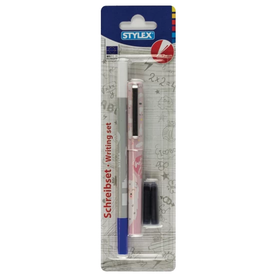 Στυλό υγρής μελάνης σε δυο διαφορετικά σχέδια. Η συσκευασία περιλαμβάνει 1 στυλό, 2 αμπούλες και 1 διορθωτικό για μελάνι