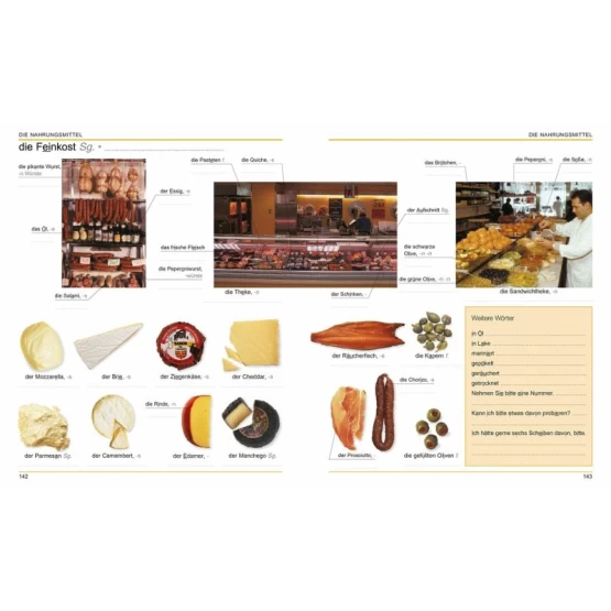 AUSGESPROCHEN GUT: Das "Visuelle Wörterbuch: Deutsch als Fremdsprache" - jetzt auch zum Anhören! Mit 7.500 Wörtern in der kostenlosen Audio-App: Alle Begriffe können in alphabetischer Reihenfolge oder nach Kategorien sortiert, abgespielt werden. Die App ist nach Download aus dem App Store oder Google Play Store ohne Internetverbindung weltweit einsetzbar.Dieses kompakte Bildwörterbuch ermöglicht durch die Kombination aus Wort und Bild einen schnellen und lebendigen Zugang zur deutschen Sprache. Über 7.500 Wörter und Redewendungen und mehr als 1.600 farbige Fotos und Illustrationen bieten einen Einblick in zahlreiche Bereiche des alltäglichen Lebens: Menschen, Gesundheit, Haus, Dienstleistungen, Einkaufen, Nahrungsmittel, Arbeit, Verkehr, Reise, Sport, Freizeit, Umwelt etc.Alle Vokabeln sind mit Schreiblinien für Einträge in der Muttersprache versehen. Bei Substantiven sind die Pluralformen vermerkt und zudem gibt es Beispielsätze, eine Aussprachetabelle, eine deutsche Kurzgrammatik und ein einsprachiges alphabetisches Wortverzeichnis. Das Wörterbuch eignet sich auch für Sprachenlerner anderer Fremdsprachen, die ihren erarbeiteten Wortschatz hier selbst eintragen können.