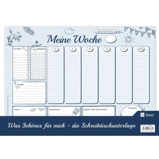Die 25 Seiten der Schreibtischunterlage begleiten Sie von Montag bis Freitag, wobei Sie genügend Platz für das Eintragen wichtiger Dinge haben. Dabei werden auch private Termine nicht vernachlässigt.