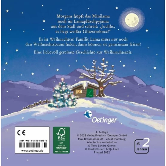 Es ist Weihnachten! Familie Lama muss nur noch den Weihnachtsbaum holen, dann können sie gemeinsam feiern! Eine liebvoll gereimte Geschichte zur Weihnachtszeit.