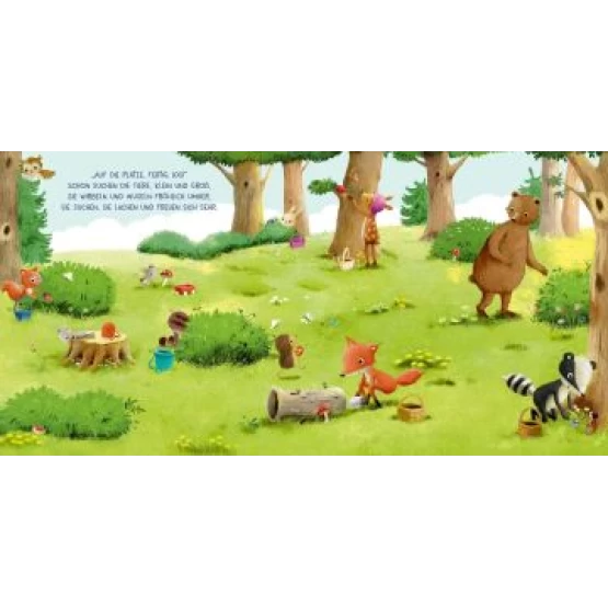 Hurra, es ist Ostern! Natürlich gehen auch die Tiere auf Eiersuche. Fuchs und Reh, Häschen und Maus: Sie alle wuseln im Wald umher und finden kleine und große Eierschätze. Was für ein Spaß!