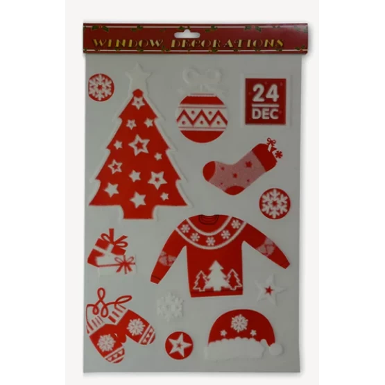 Αυτοκόλλητα παραθύρου με μήνυμα "Καλά Χριστούγεννα" ή διάφορα Χριστουγεννιάτικα αντικείμενα , 28x40 εκ. σε χρώμα κόκκινο-άσπρο, ιδανικό για την χριστουγεννιάτικη διακόσμηση του σπιτιού, του γραφείου ή του σχολείου.
