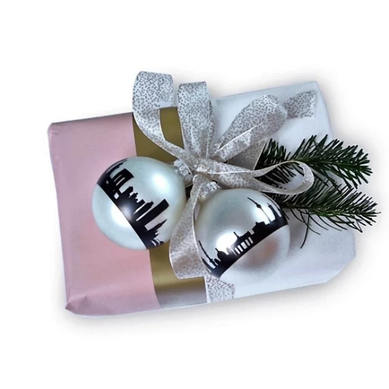 Χριστουγεννιάτικη γυάλινη μπάλα με μαύρο περίγραμμα την πόλη του Βερολίνου.