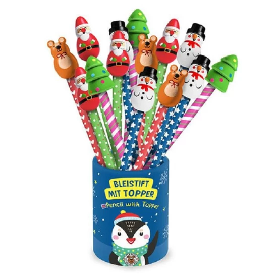 Μολυβάκια με τέσσερις διαφορετικές Χριστουγεννιάτικες ξύλινες φιγούρες για την γιορτινή περίοδο,που μπορούν να προσφερθούν ως δώρο.