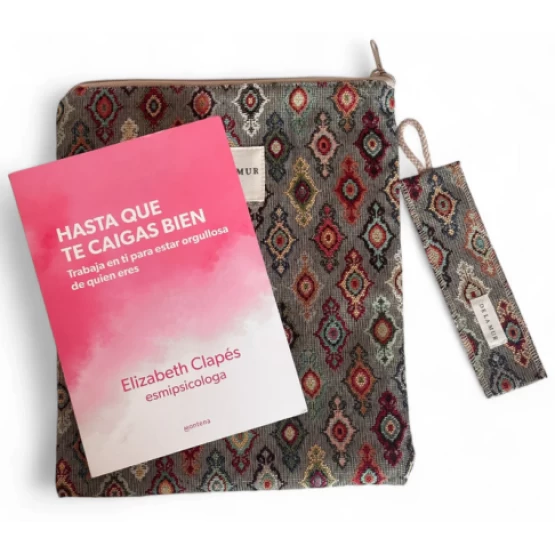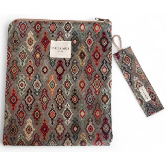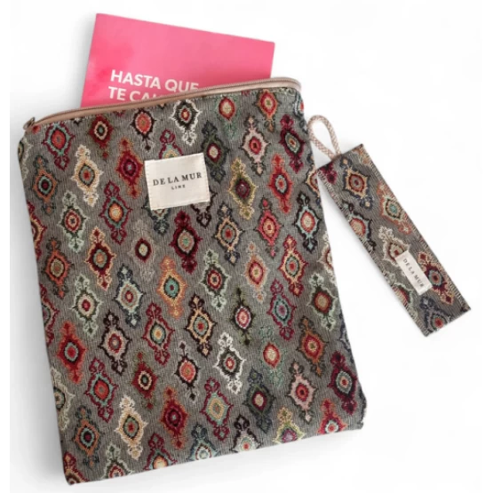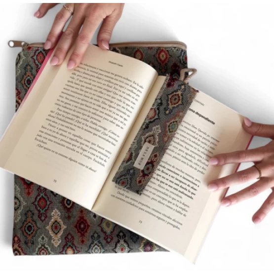 Θήκη βιβλίου με φερμουάρ και προστατευτική επένδυση και ασορτί υφασμάτινο σελιδοδείκτη