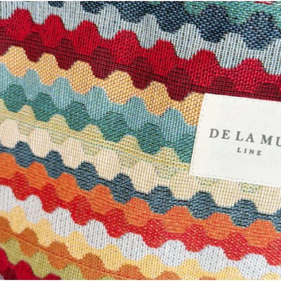 Ovale Tasche mit Henkeln zum Tragen über der Schulter. Gefertigt aus dickem Jacquard-Stoff mit mehrfarbigem, geometrischem Zickzackmuster. Pflegehinweis: Handwäsche in kaltem Wasser, nicht im Trockner trocknen.