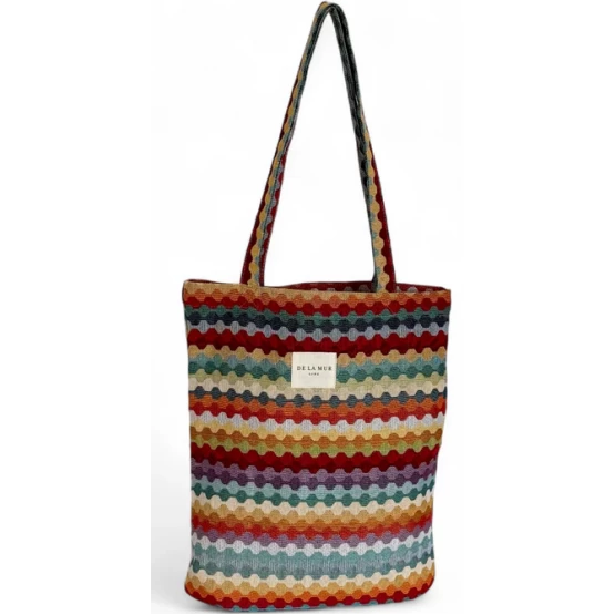 Μικρή τσάντα με χερούλια για να φοριέται στον ώμο. Κατασκευασμένη από χοντρό Jacquard ύφασμα με πολύχρωμο, γεωμετρικό, ζιγκ-ζαγκ μοτίβο. Σημείωση φροντίδας: Πλύσιμο στο χέρι σε κρύο νερό, μην το στεγνώνετε στον στεγνωτήριο.