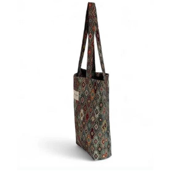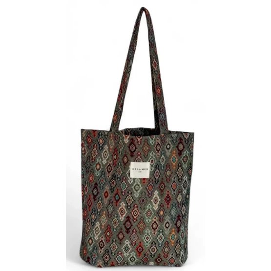 Μικρή τσάντα με χερούλια για να φοριέται στον ώμο. Κατασκευασμένη από χοντρό Jacquard ύφασμα με πολύχρωμο, γεωμετρικό μοτίβο. Σημείωση φροντίδας: Πλύσιμο στο χέρι σε κρύο νερό, μην το στεγνώνετε στον στεγνωτήριο.