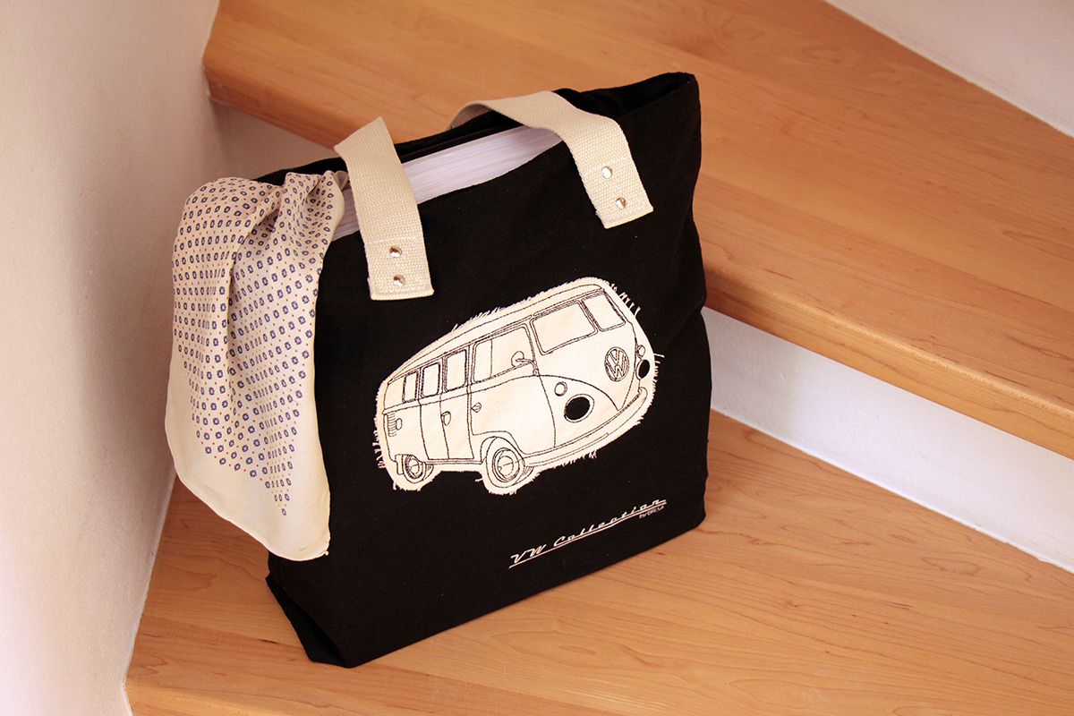 Η ευρύχωρη τσάντα shopper από καμβά είναι ιδανική για ψώνια. Κλείνει με φερμουάρ στο πάνω μέρος με όμορφο τελείωμα ένα μικρό μεταλλικό λεωφορείο VW και έχει μικρή εσωτερική τσέπη gia επιπλέον χώρο αποθήκευσης. Το περίτεχνα ραμμένο VW Bulli την κάνει ξεχωριστή.