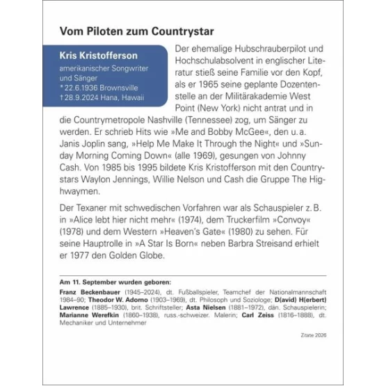 - Berühmte Personen im Porträt: Tageskalender mit lesenswerten Kurzbiografien und Hintergrundinformationen auf den Blattrückseiten