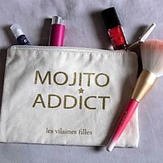 Πρακτικό τσαντάκι για τα καλλυντικά και για τα διάφορα μικροπράγματα. Από βαμβακερό ύφασμα με χρυσά γράμματα στο λογότυπο . Κλείνει με φερμουάρ και έχει υφασμάτινη εσωτερική επένδυση.